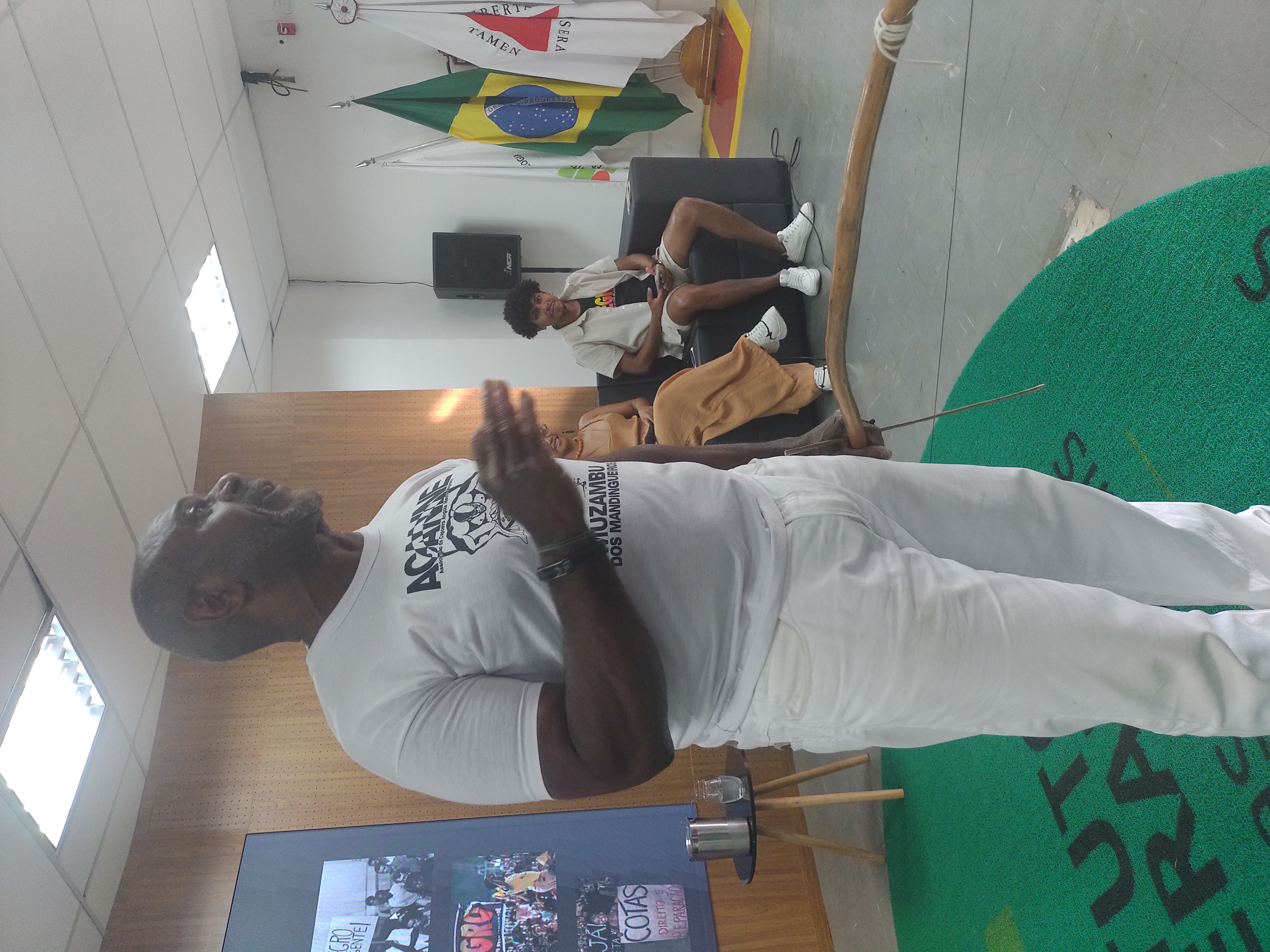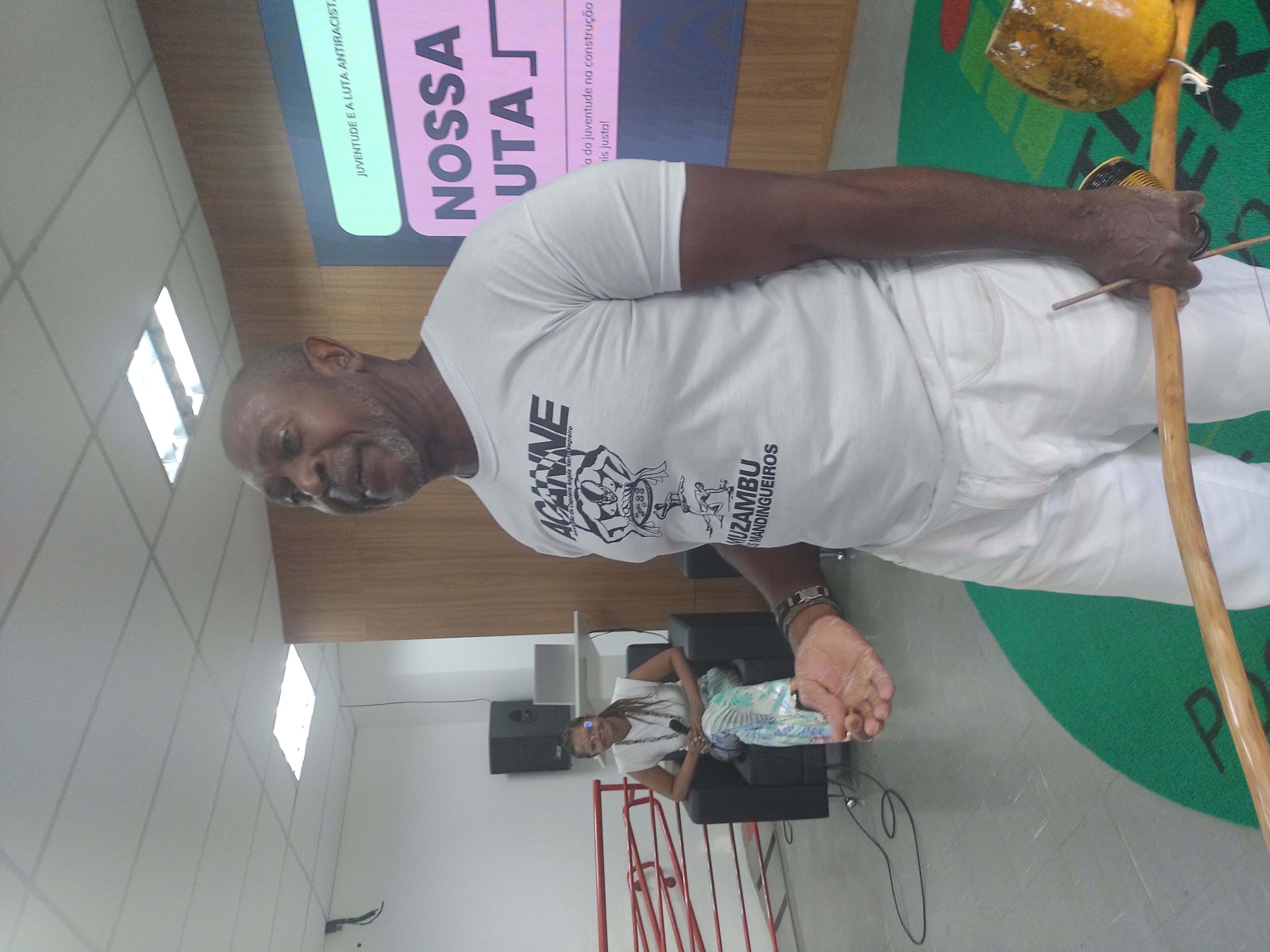 🎵 Mestre Luizinho conduziu uma discussão sobre o poder da capoeira como ferramenta de autoconhecimento e reconhecimento do “eu interior”;