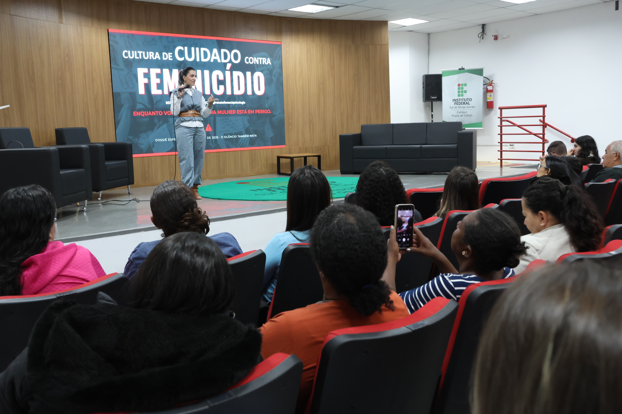 4M0A8021 okNo dia 14 de abril, o Auditório do Campus Poços de Caldas do IFSULDEMINAS recebeu a palestra “Cultura de Cuidado Contra o Feminicídio”, ministrada pelo psicólogo Renato Luiz da Silva Fonseca, através do Programa Mulheres Mil. A atividade, aberta a toda a comunidade, reuniu participantes em um momento de reflexão e aprendizado sobre a violência contra a mulher no Brasil.