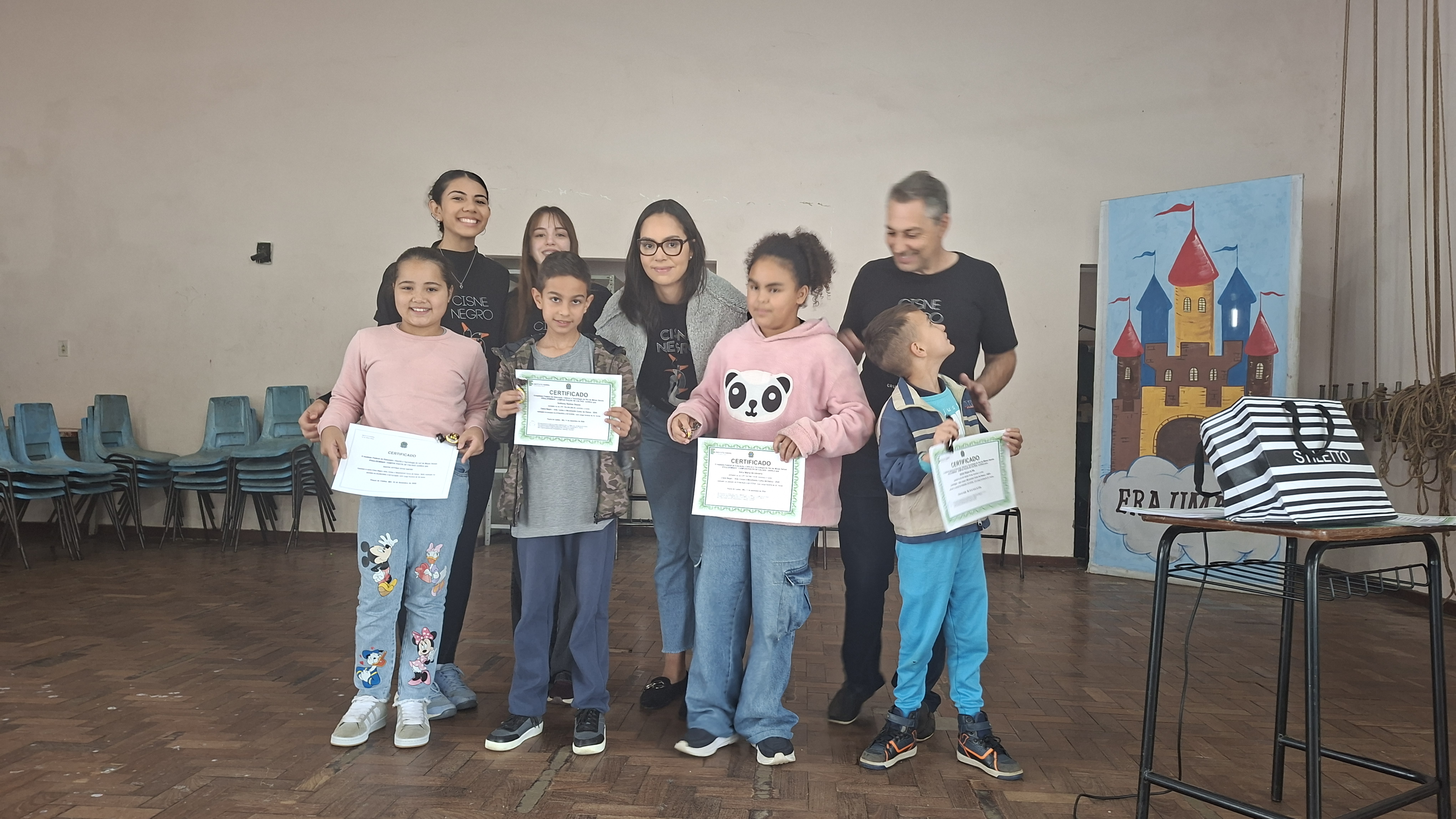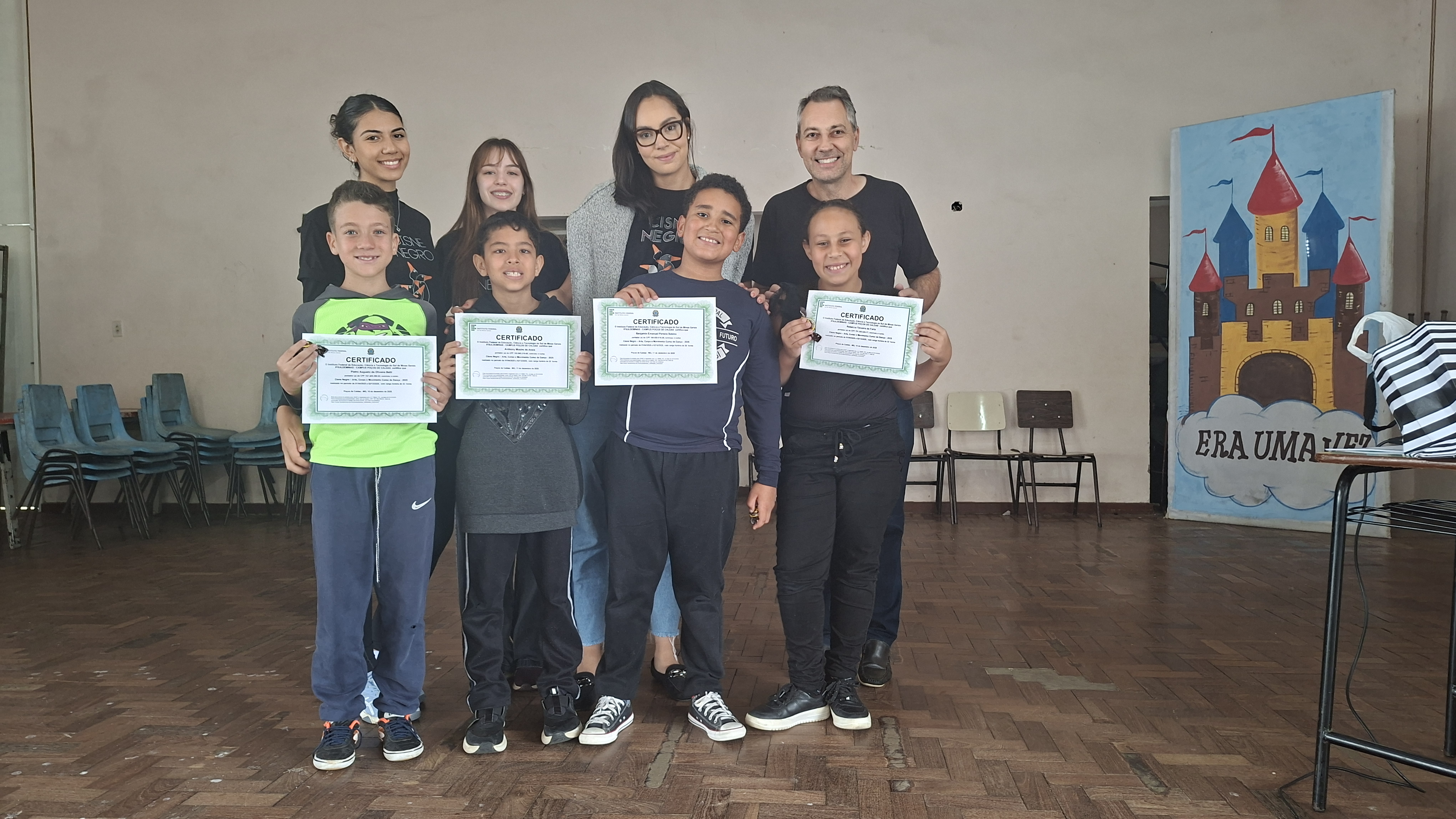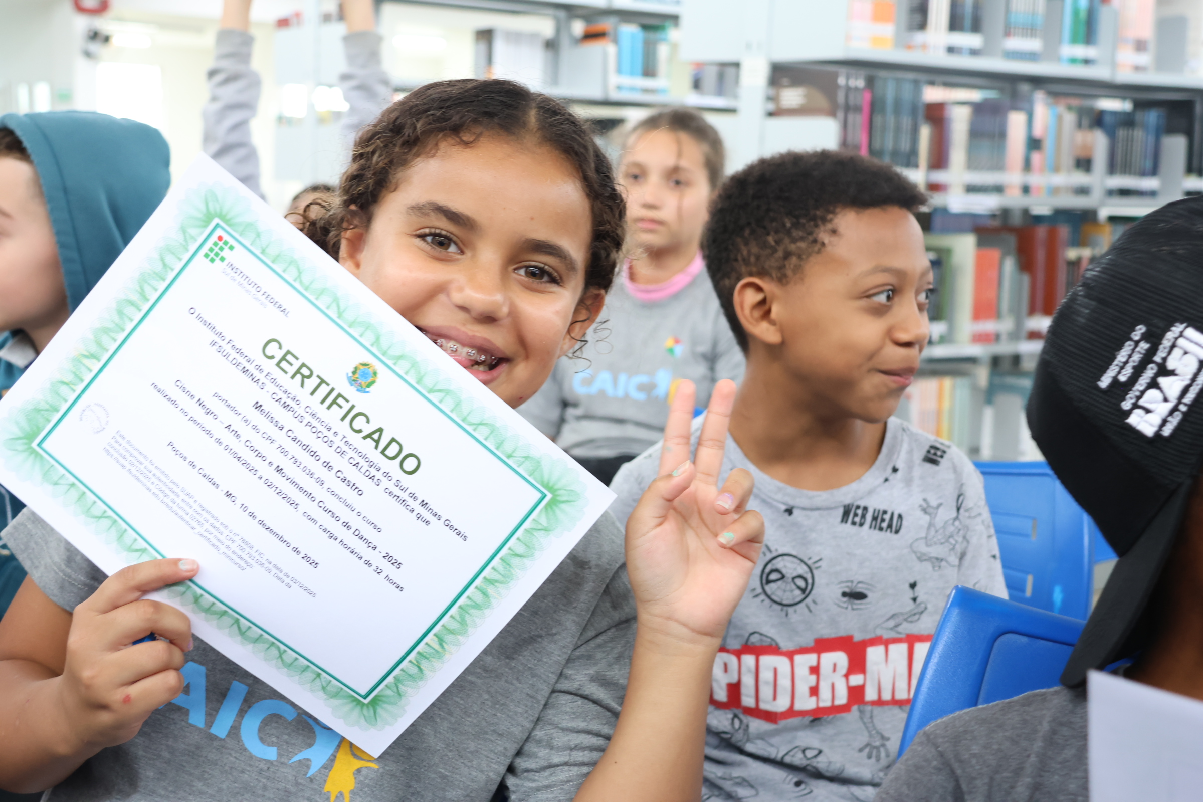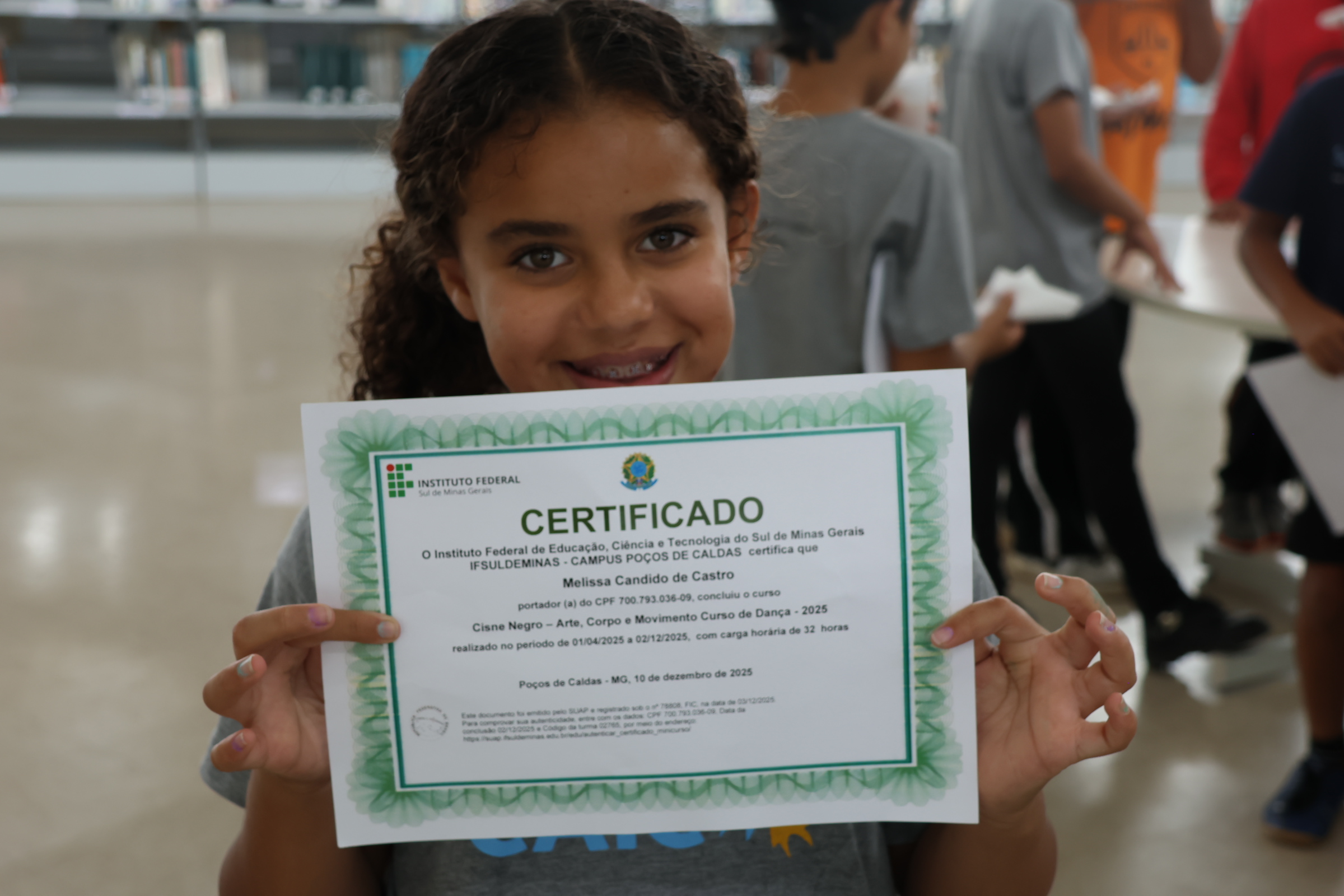 Ao longo do ano, os participantes estiveram envolvidos em atividades voltadas à musicalidade, coordenação motora e expressão corporal. Como forma de reconhecer o envolvimento e a dedicação dos alunos, foi realizada, no dia 12 de março de 2026, a cerimônia de entrega de certificados. A atividade aconteceu no PMJ João Monteiro, no bairro Jardim Esperança. Os certificados também foram entregues na biblioteca do campus, onde as crianças tiveram a oportunidade de conhecer o espaço, circular pelo ambiente e visitar as exposições realizadas no local.